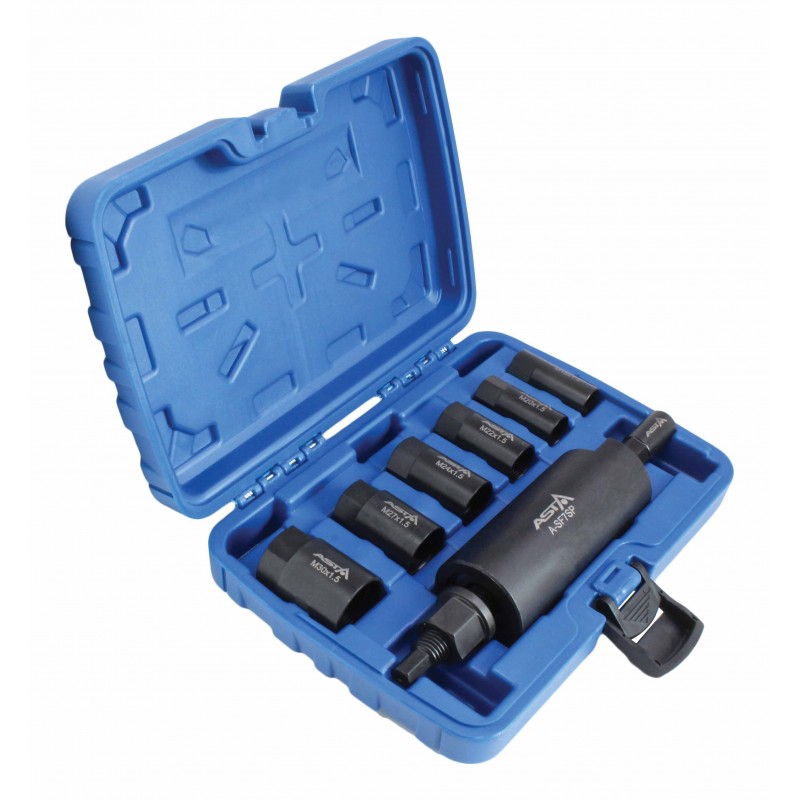 Die spezielle Konstruktion sorgt für eine zentriertes Abziehen. 6x Adapter ermöglichen eine breite Anwendung für viele Automarken: Audi, BMW, Fiat, Ford, Mercedes-Benz, Peugeot, Porsche, Renault, Subaru, Opel / Opel und Volvo.