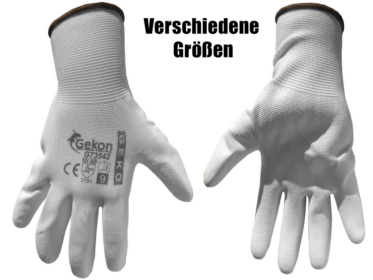 Arbeitshandschuhe | 12 STÜCK | Polyurethan beschichtet Größen 9-10 weiß