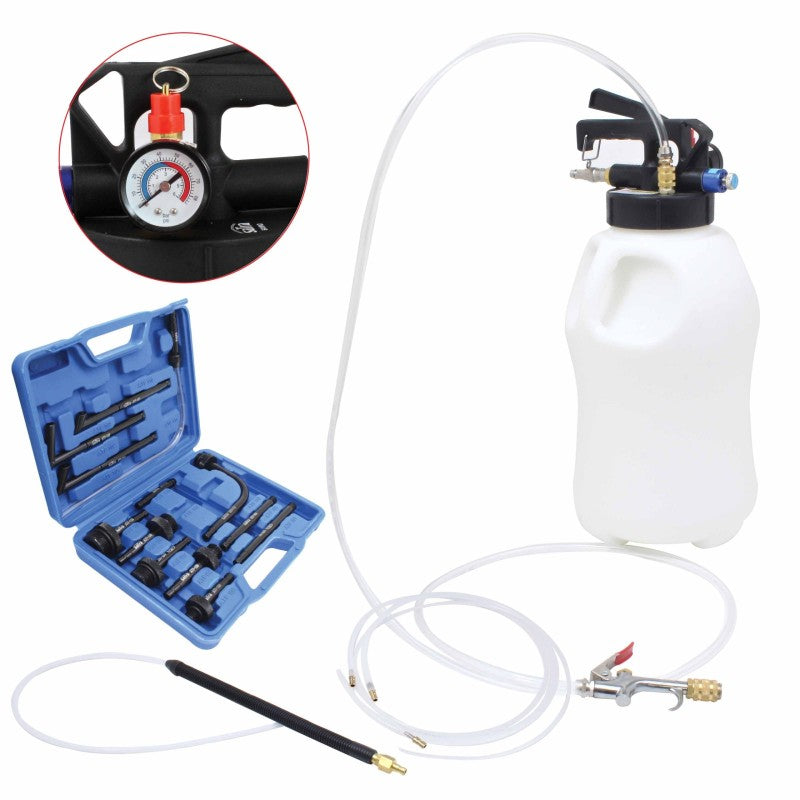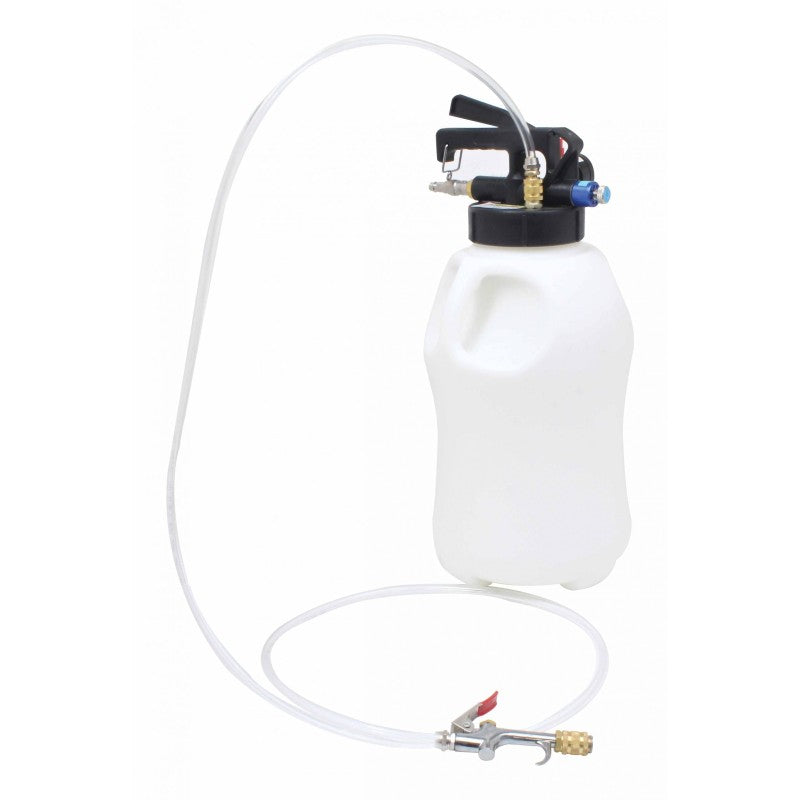 Dieses pneumatische Pumpenset mit einem 10-Liter-Tank ermöglicht das einfache Absaugen und Befüllen von Automatikgetrieben und Differentialen mit Öl.