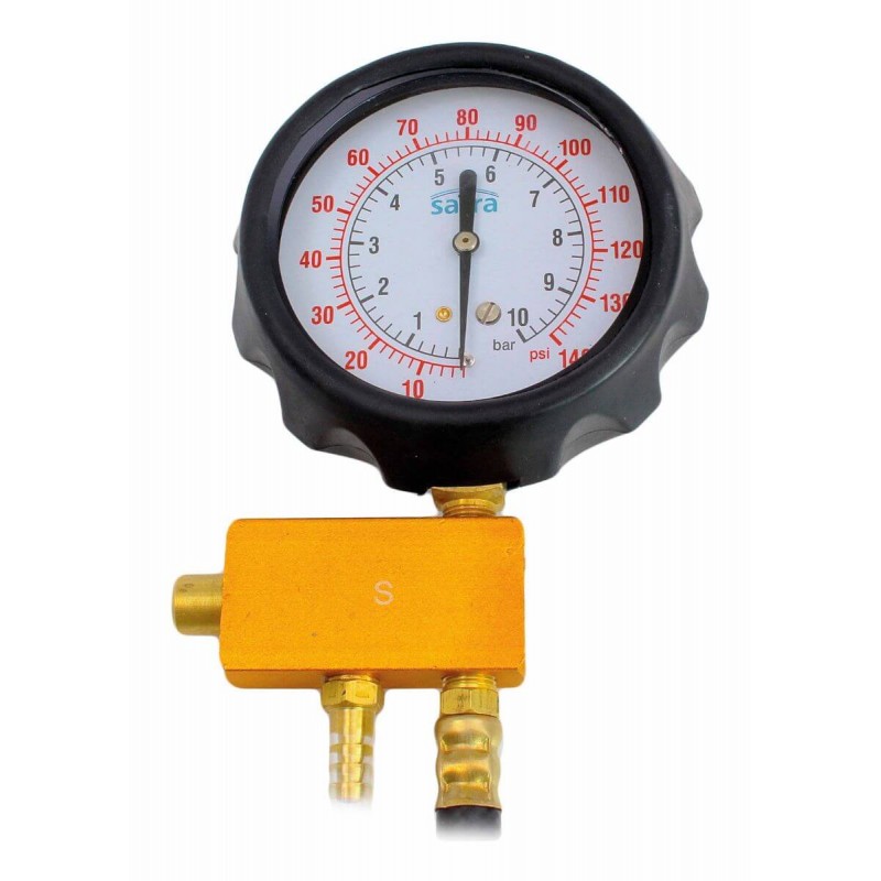 Kraftstoffdruckprüfer mit einem 0-10 bar (140 PSI) Manometer. Ermöglicht die Dichtheitsprüfung und die Prüfung des Steuerdrucks bei nahezu allen Bosch C.I.S Jetronic Einspritzsystemen.