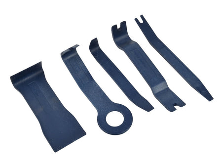 Ein Satz Spezialabzieher zum Entfernen von Autopolstern, Türverkleidungen und Zierleisten. Die Abzieher sind aus gehärtetem Nylon gefertigt und verfügen über spezielle Profile, die eine Hebelwirkung bei der Demontage von Polsterklammern ermöglichen.