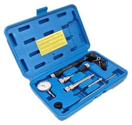 Dieses Einstellwerkzeug ermöglicht die präzise Prüfung der Motorsteuerung und die genaue Einstellung des Förderbeginns bei Diesel-Einspritzpumpen. Es umfasst einen Messuhradapter mit Spannschaft zur einfachen Montage einer Messuhr sowie verschiedene Verlängerungen und Adapter für unterschiedliche Gewinde. Das Set ist kompatibel mit einer Vielzahl von Einspritzpumpen, darunter Bosch EP/VE, Rotary, Diesel Kikki, Nippon Denso, Lucas und CAV Rotodiesel.