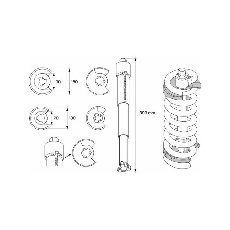 Dieser Federspanner ermöglicht den sicheren und effizienten Aus- und Einbau von Stoßdämpferfedern an Vorder- und Hinterachsen. Mit einer maximalen Druckkraft von 2500 kg und einem Arbeitsbereich von 110 mm bis 280 mm ist er für eine Vielzahl von Fahrzeugmodellen geeignet