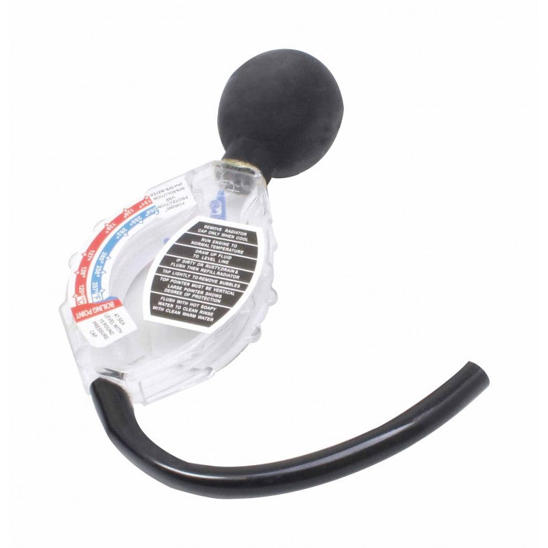 Das Frostschutzprüfgerät von ASTA ermöglicht die Überprüfung der Ethylen-Glykol-Konzentration und verfügt über eine Temperaturkorrekturskala für eine genaue Interpretation der Mischungsverhältnisse. Das robuste Gehäuse aus Verbundmaterial und der Gummiball sorgen für eine lange Lebensdauer.