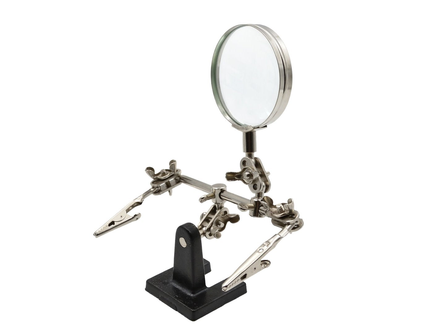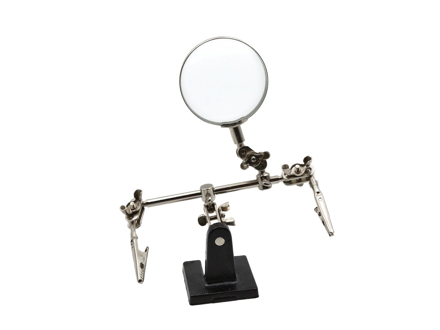 Lupenhalter für Feinarbeiten, die „dritte Hand“ . Ein unverzichtbares Werkzeug bei Präzisionsarbeiten. Besonders geschätzt im Modellbau, beim Löten, Zusammenbauen oder Reparieren von Uhren und bei allen Arten von Präzisionsarbeiten, bei denen wir zwei freie Hände benötigen.
