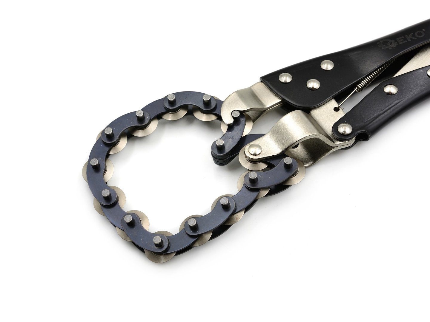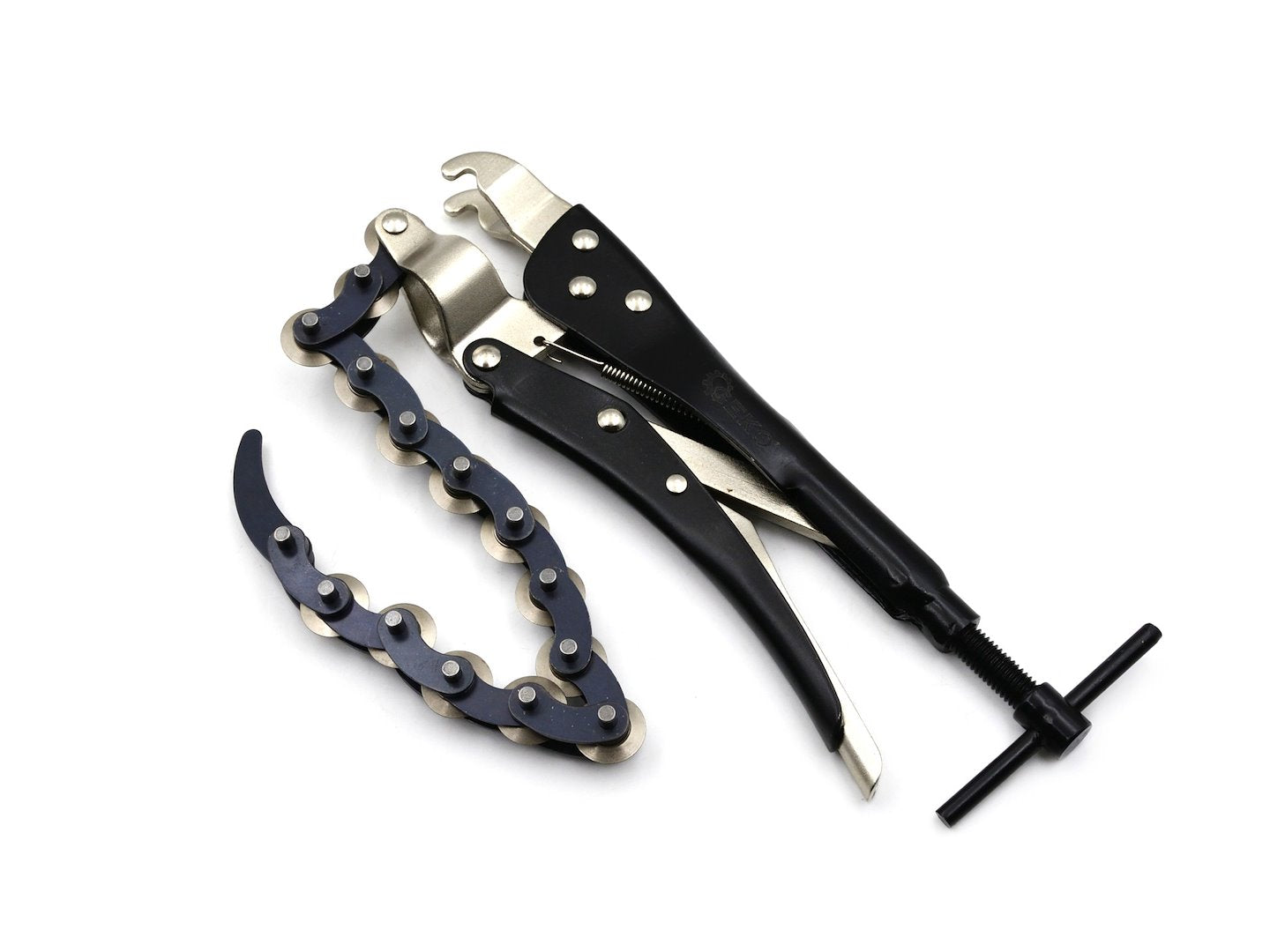 Ketten-Auspuffrohrschneider. Schnittdurchmesser bis 93 mm. Geeignet zum Schneiden von Rohren bis 2,5 mm Dicke.