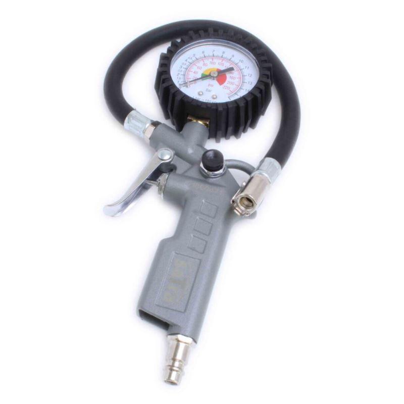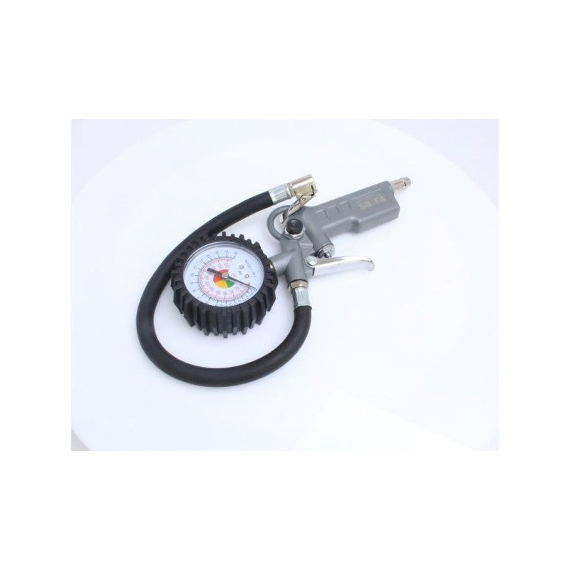 Die Druckluft-Pistole, ist ein unverzichtbares Werkzeug für präzise Reifendruckkontrolle. Ein besonderes Merkmal ist die robuste Gummiabdeckung, die das integrierte Manometer vor Beschädigungen schützt und somit eine lange Lebensdauer gewährleistet. Für eine praktische Aufbewahrung ist die Pistole mit einem Aufhängegriff ausgestattet. Der Druckmessbereich erstreckt sich von 0 bis 16 Bar, wobei eine hohe Genauigkeit von 0,1 Bar gewährleistet ist. Der Lufteinlass beträgt 1/4", was eine einfache Verbindung zu gängigen Druckluftsystemen ermöglicht.