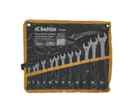 - Dieser 12-teilige Ringmaul-Schraubenschlüssel-Satz bietet eine breite Palette an Schlüsselweiten (6–22 mm) für vielfältige Anwendungen. Die satinierte Oberfläche und die rutschfeste Beschichtung sorgen für eine komfortable Handhabung. Das Zwölfkant-Ringprofil ermöglicht ein sicheres Anziehen und Lösen von Schrauben und Muttern. Geliefert wird das Set in einer robusten Tetron-Rolltasche zur praktischen Aufbewahrung.