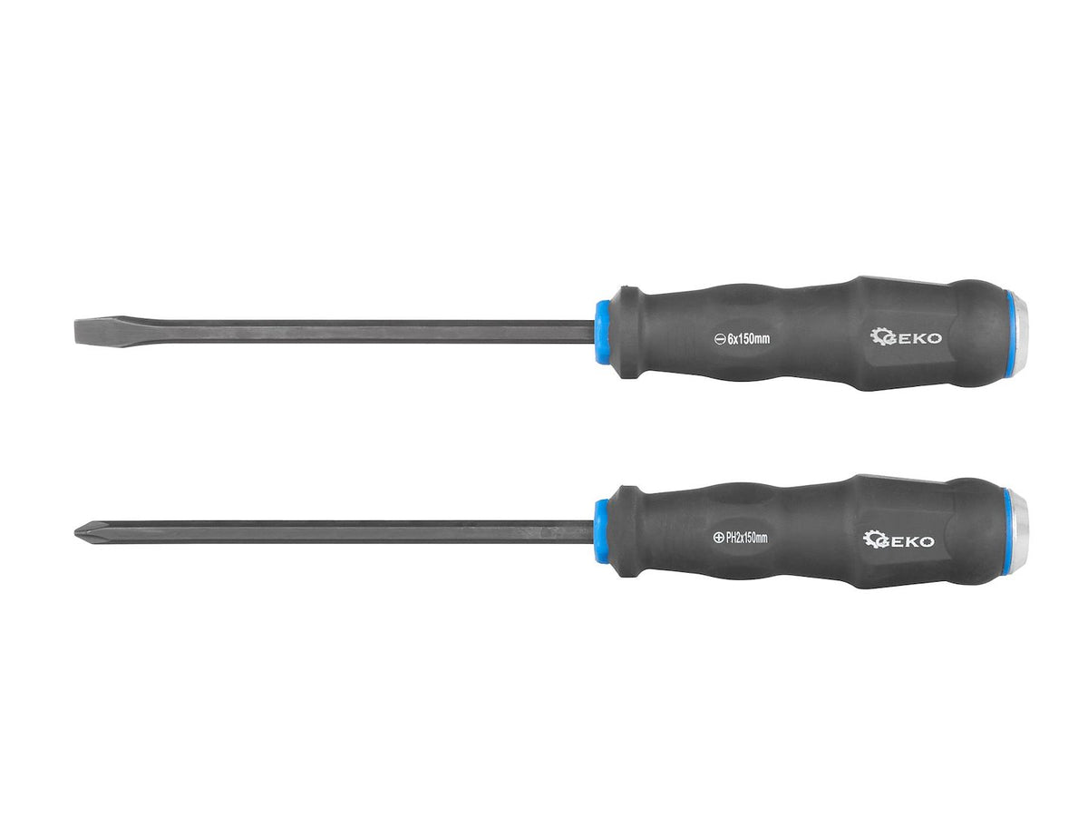 Steigern Sie Ihre Effizienz mit diesem 2-teiligen Schraubenzieher- Set mit Schlagkappe. Die Schraubendreher sind mit Kreutz (PH2x150mm)- und Schlitzkopf (6x150mm) ausgestattet und ermöglichen präzises und schnelles Arbeiten. Ein Must-Have für jeden Profi und Heimwerker.
