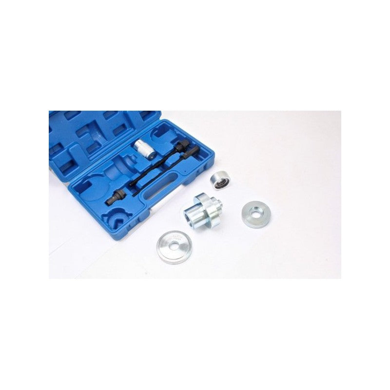 Dieses Werkzeug-Set ermöglicht den einfachen Aus- und Einbau der Lager, Gummibuchsen im vorderen Querlenker. Es enthält eine Spindel, eine Spindelverlängerung, Armmuttern sowie einen M10x1,25 Spindeladapter. Gefertigt aus robustem S45C Kohlenstoffstahl. Passend u.a. für folgende Modelle: Audi A2, VW Polo IV 9N (2002-2005), Skoda Fabia I, Skoda Roomster, Seat Ibiza 6L (2002-2006), Seat Cordoba (2002), Seat Altea, uvm.