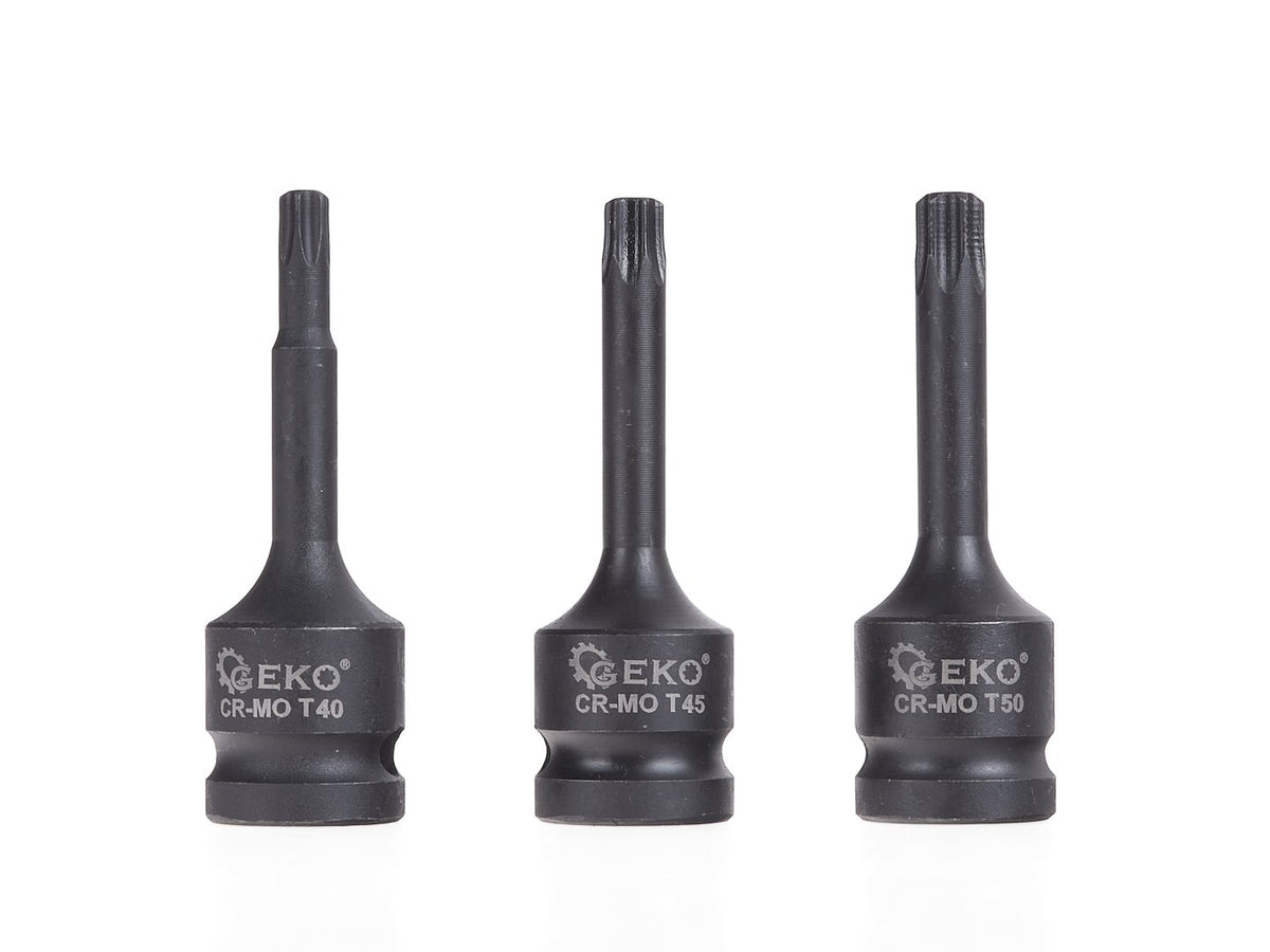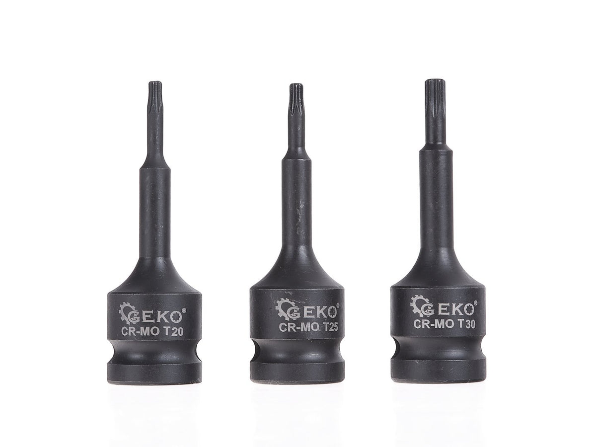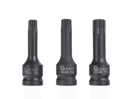 Torx-Schlagstecknüsse- Satz aus hochwertigem Chrom-Molybdän-Stahl (Cr-Mo) . Der Satz enthält 9 Steckschlüsseleinsätze in den Größen T20 - T70 . Die Steckschlüsseleinsätze mit 1/2-Zoll-Aufnahme eignen sich für schwere Arbeiten mit Schlagschraubern mit hohem Drehmoment. Sie eignen sich ideal für professionelle Autowerkstätten.