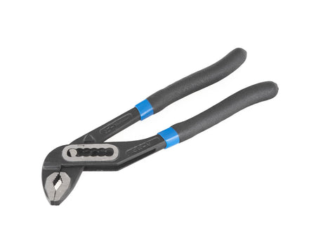 Diese Wasserpumpenzange aus Chrom-Vanadium-Stahl bietet eine Backenöffnung von bis zu 50 mm durch das verschiebbare Gelenk, das sich in verschiedenen Stufen einstellen lässt. Sie eignet sich ideal zum Greifen von Rohren, Muttern und Schrauben und ist 250 mm lang. Eine praktische und vielseitige Werkzeuglösung.