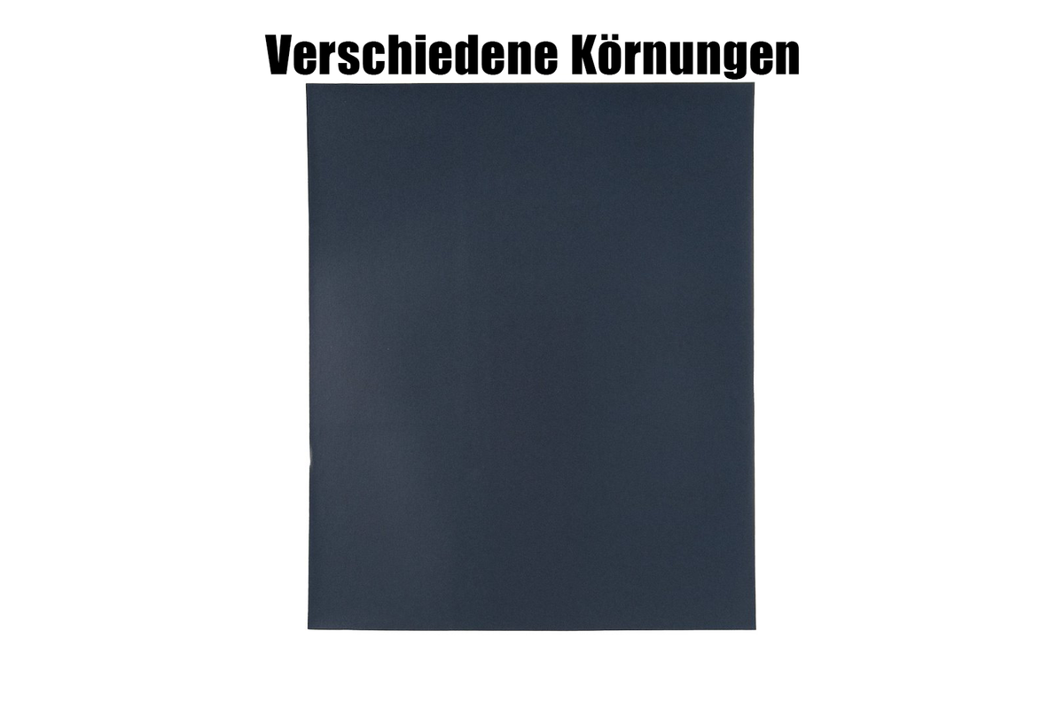 Wasserfestes Schleifpapier mit den Maßen 230x280mm und Körnung P400 - P5000, das hervorragende Ergebnisse bei der Bearbeitung verschiedener Oberflächen im Trocken- und Nassschliff liefert.